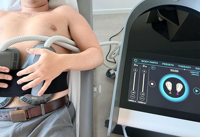 Protocollo a doppia energia: con HIFEM+ e massima RF per l’eliminazione del grasso localizzato e la tonificazione dei muscoli laterali riscaldati